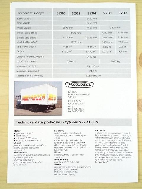 Karosa Hořice v Podkrkonoší - skříňové automobily na podvozcích Avia A 31.1 N - prospekt
