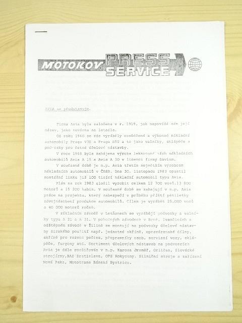 Avia - soubor prospektů - Motokov